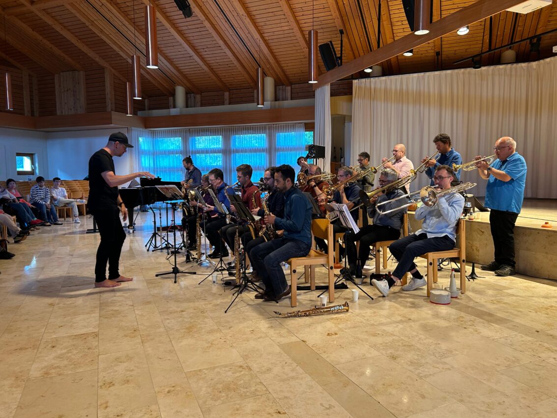 Unter der Leitung von Matt Stämpfli präsentierte die Monday Night Rehearsal Band MNRB zeitgenössische Big-Band-Musik auf top Niveau. Wegen hoher Regenwahrscheinlichkeit musste das Konzert vom Max-Bill-Platz ins Kirchgemeindehaus verlegt werden. Die rund 60 Besuchenden waren auch hier begeistert. Und wer es verpasst hat, kann unter diesem LINK die nächsten Daten erfahren.
